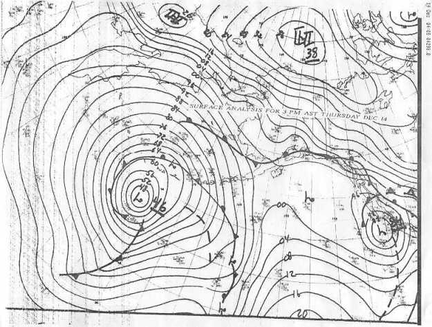 And below is some history for comparison: a few scans of old weatherfax sheets from a ship I was aboard in the mid-1990s in Alaskan waters. We frequently had strong non-tropical storms. Sandy’s lowest pressure was 943 mB; the lowest I recorded during Sandy was 961.59 mB.