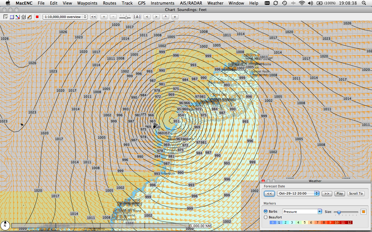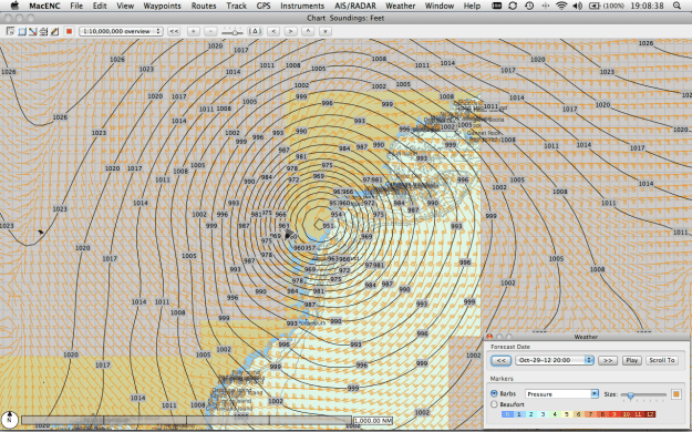 I don’t know much about GRIBs, and my area of interest in weather data is usually much smaller than their resolution provides, but with the size of Sandy it really shows a good overview of the forecast conditions.